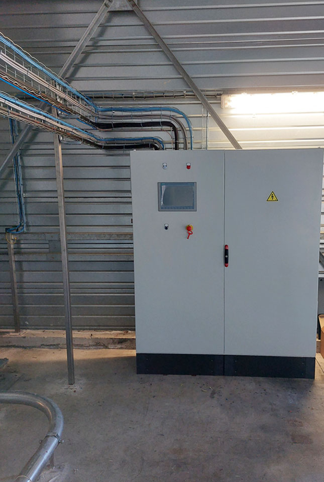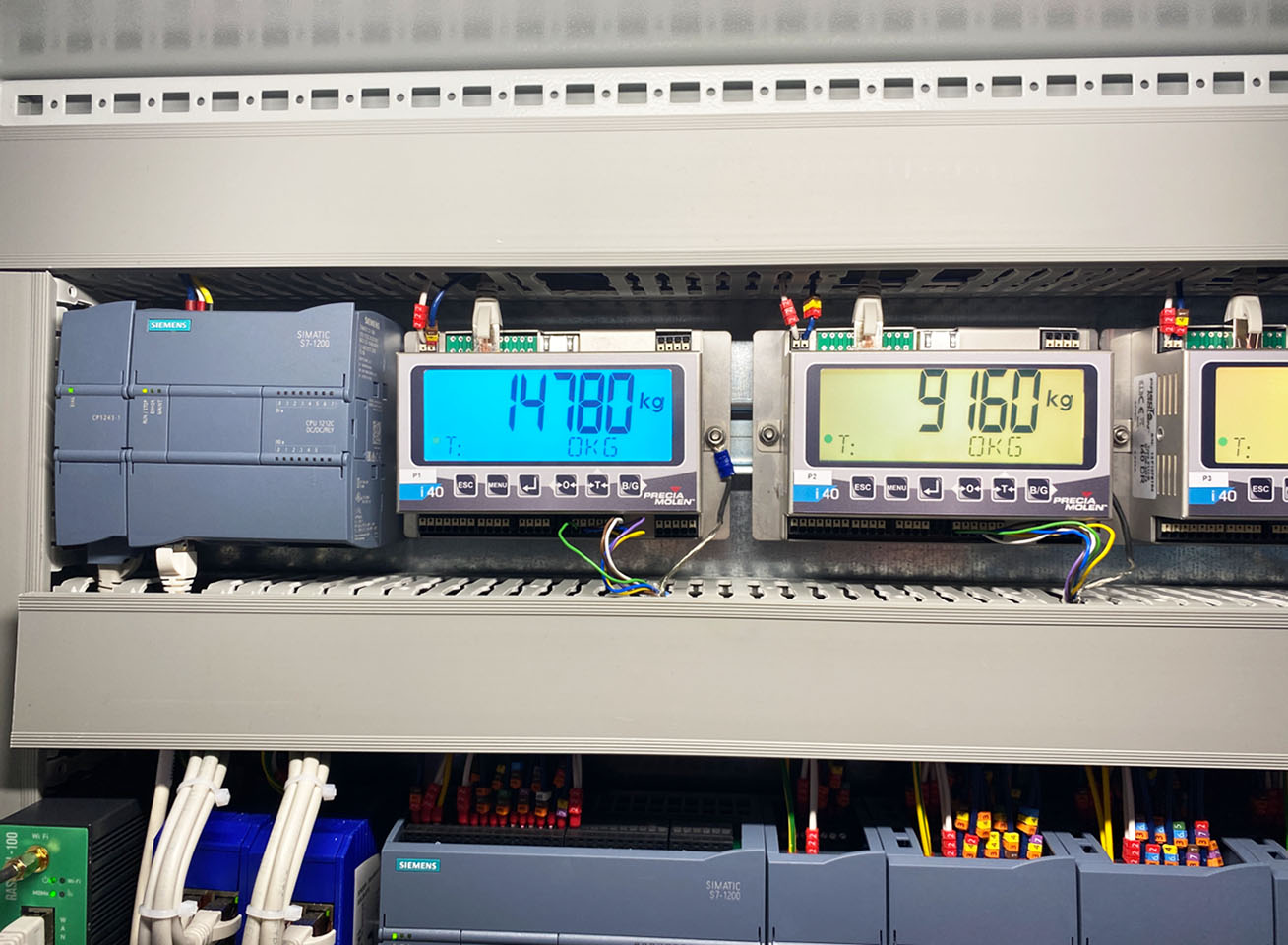The control cabinet is the heart of the installation. Inside, all the i40 displays for the silo load cells, filter cycles and Big Bag emptying machine are centralised and controlled by a SIEMENS S7-1200 PLC. The interface is equipped with a TP1200 touch screen. To facilitate operation, a synoptic diagram guides the operator and allows them to quickly view which elements are in operation or shut down.