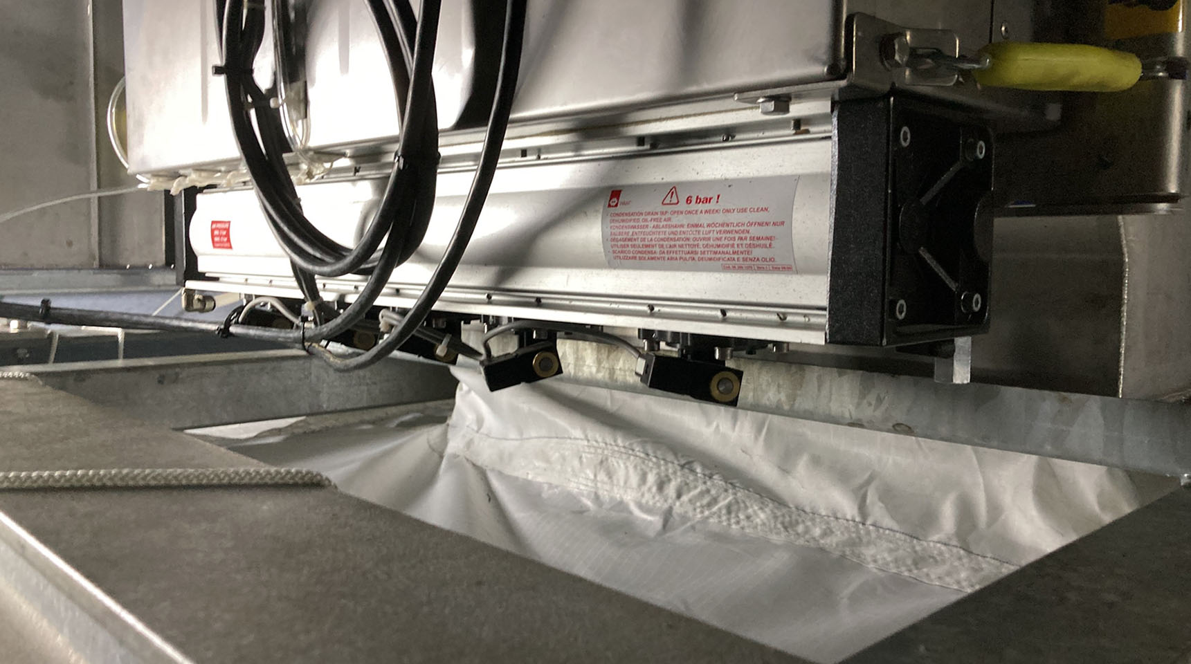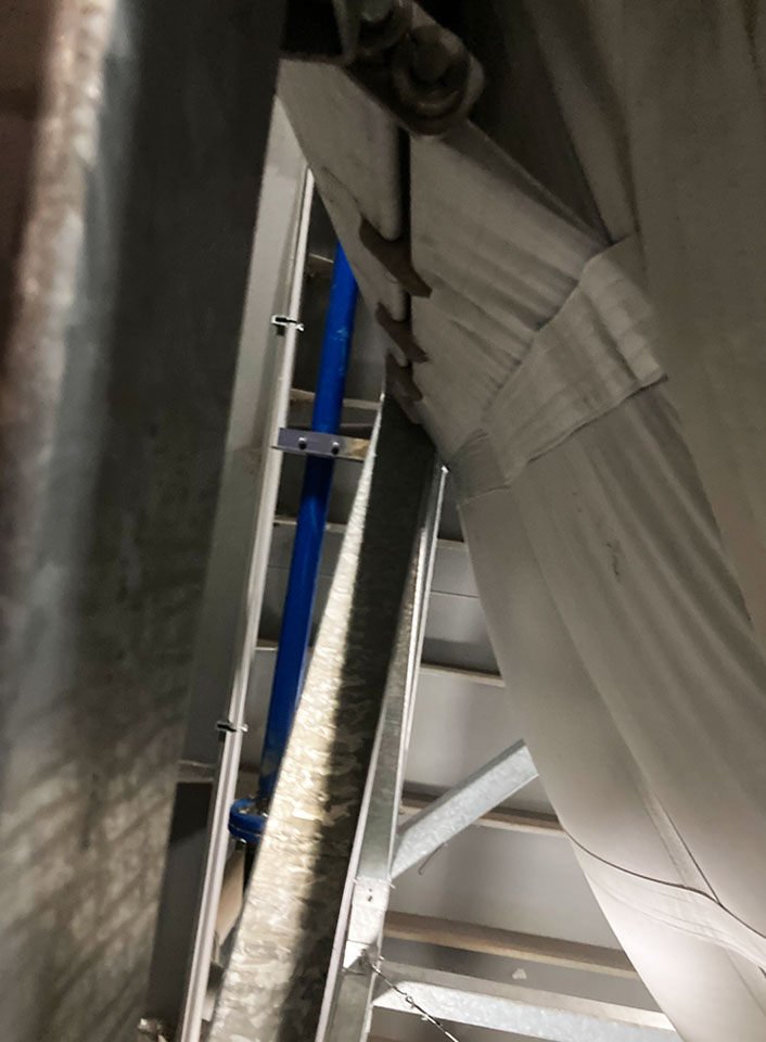 The tarpaulins resistant and antistatic are made from polyester fabric. They are reinforced with horizontal and vertical seams, ensuring their durability. To facilitate pneumatic loading by lorry, the roof of the silos is equipped with a decompression filter.