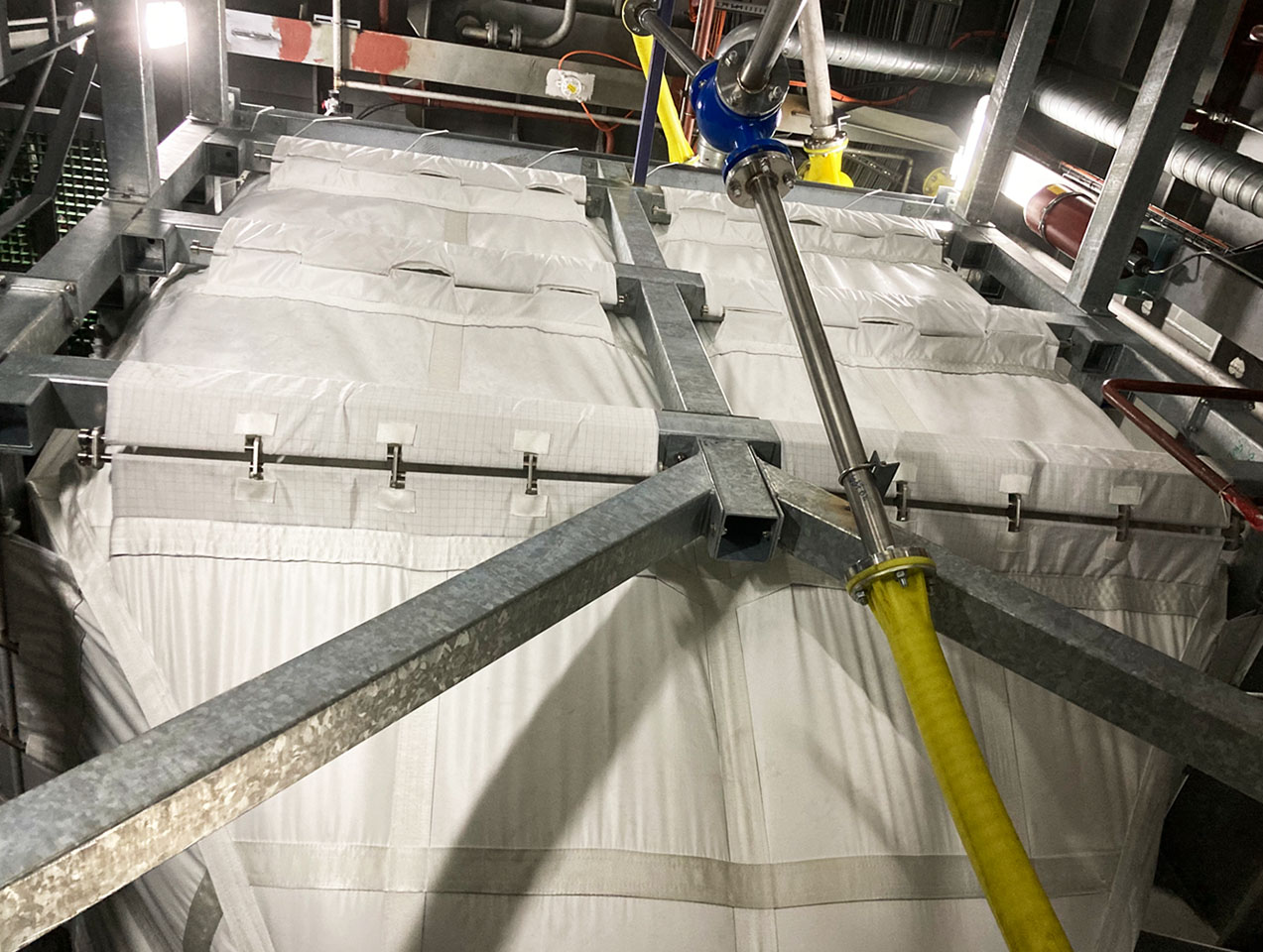 - A filtration system and declogging system had to be integrated into the roof of the silos to allow decompression during pneumatic loading.