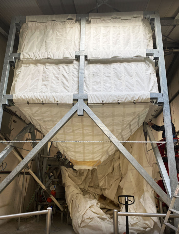 Faced with this situation, there were two challenges: replacing the damaged fabric without dismantling the silo structure and minimising downtime as much as possible. Our patented Easyvrac® solution enabled us to intervene quickly and efficiently.