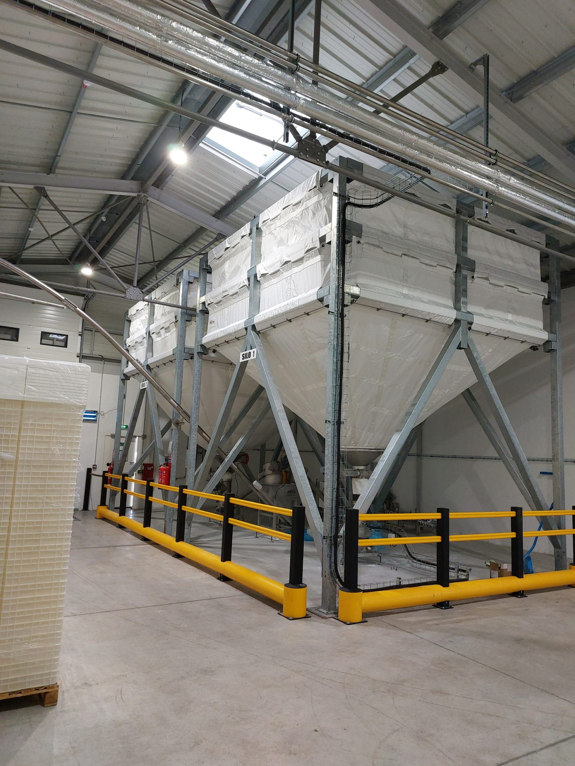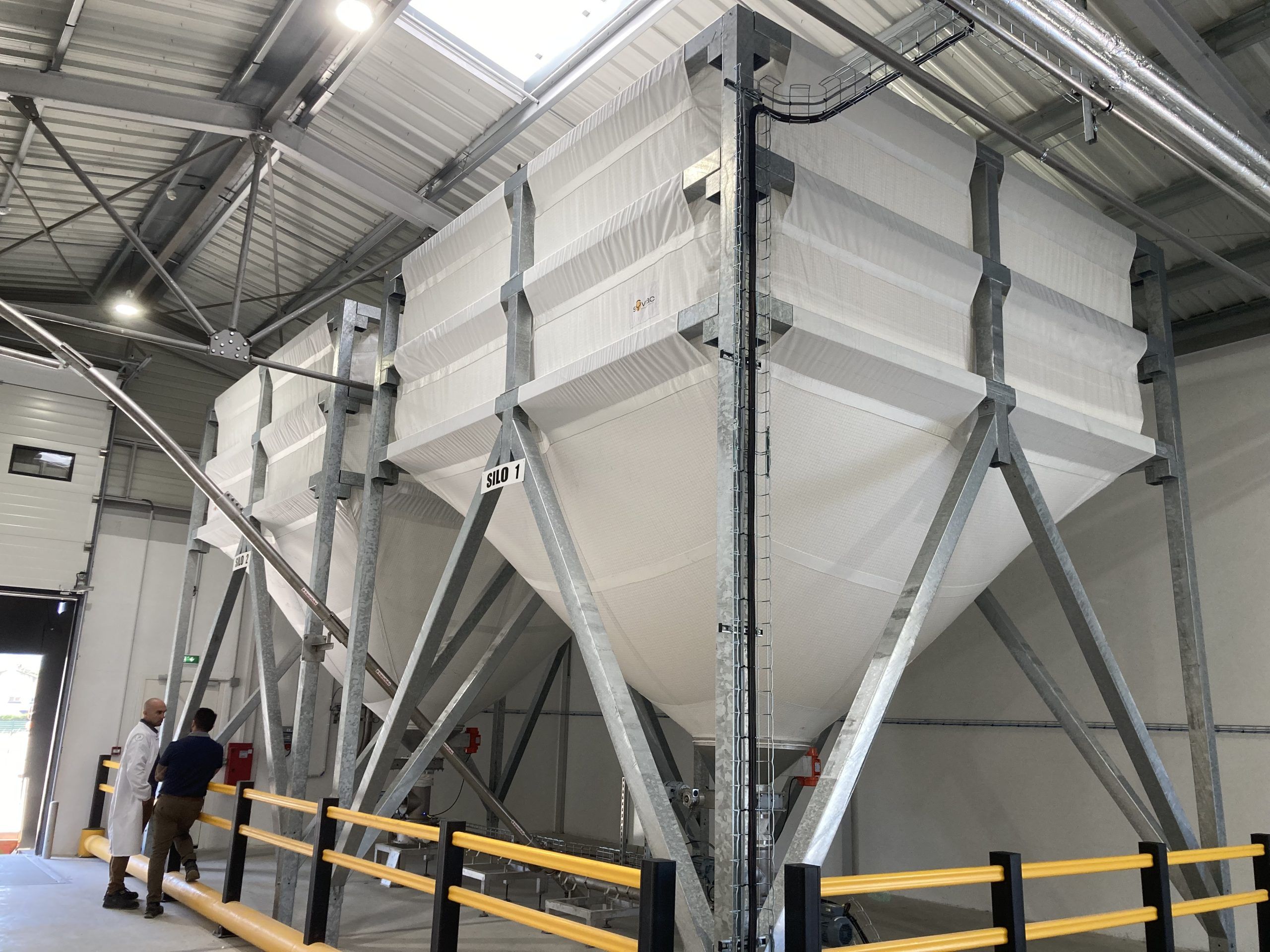 - Two 37m³ flexible silos for storing granulated sugar with vibrating bottoms,