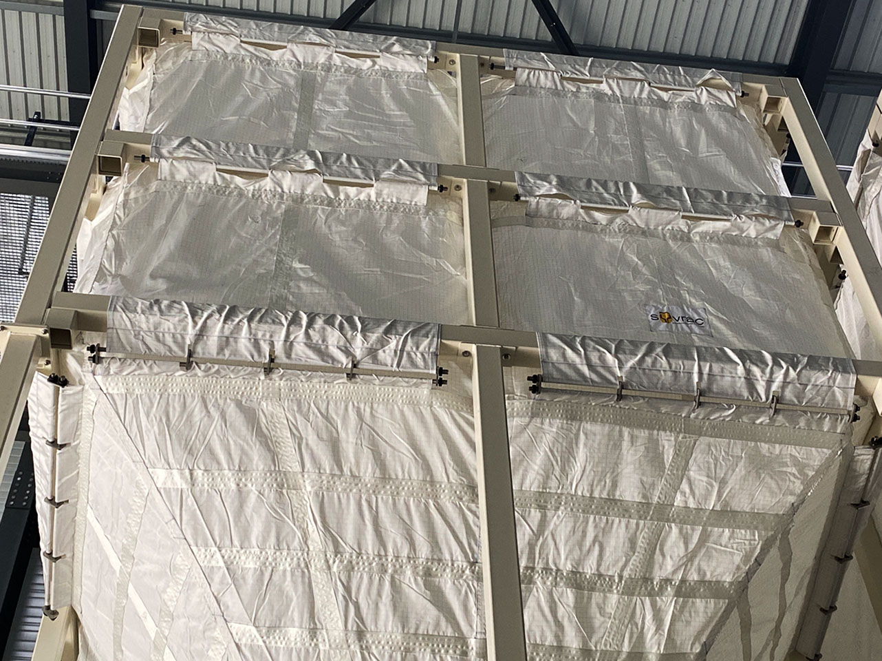 The Syvrac solution offers optimised storage capacity with 12 flexible silos, each with a capacity of 51 m³, in compliance with food standards. The custom-made silos ensure stability and durability, with quick assembly/disassembly thanks to the Easyvrac® system. The stainless steel vibrating bottom facilitates emptying, and accurate real-time weighing allows for effective stock monitoring, ensuring optimal management of dried vegetables.