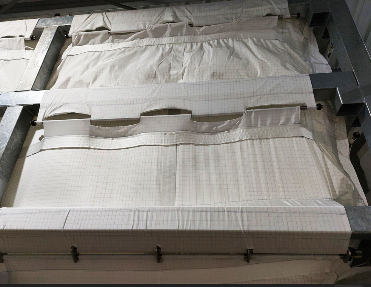 - Silo tarpaulins are made from resistant polyester fabric that is antistatic, offering high durability. The roof is equipped with breathable felt allowing the silo to decompress during pneumatic loading. Numerous horizontal and vertical reinforcements are sewn in to ensure the structure’s strength.