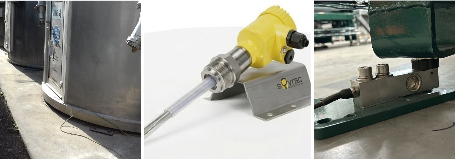 - Industrial load cells: Installation of load cells beneath the silo feet (fabric, polyester or steel) for stocktaking (brands: Precia Molen, METTLER TOLEDO, SCAIM).