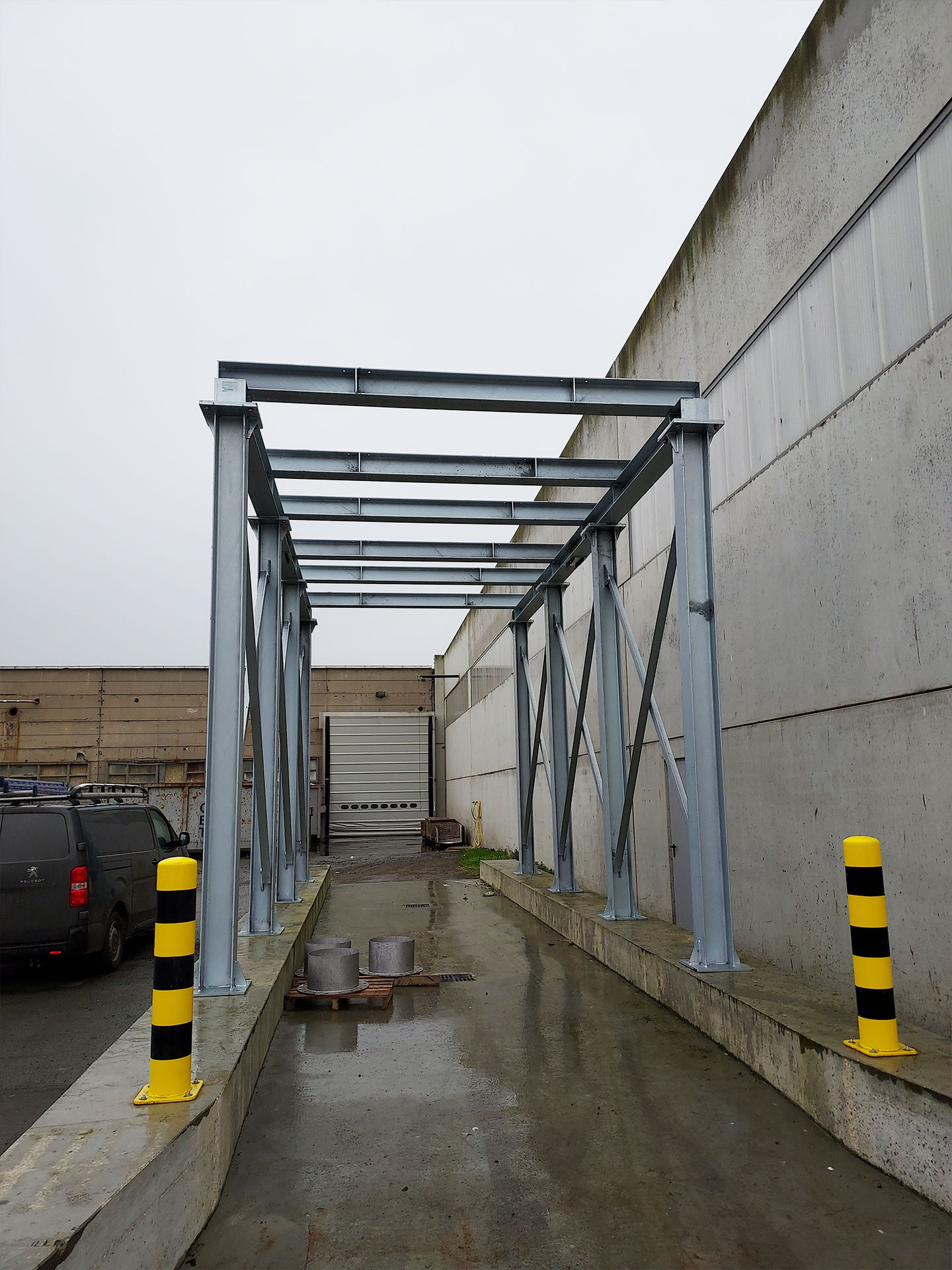 The silo rests on a galvanized steel structure designed according to Eurocode standards to ensure stability and resistance to wind and seismic loads.